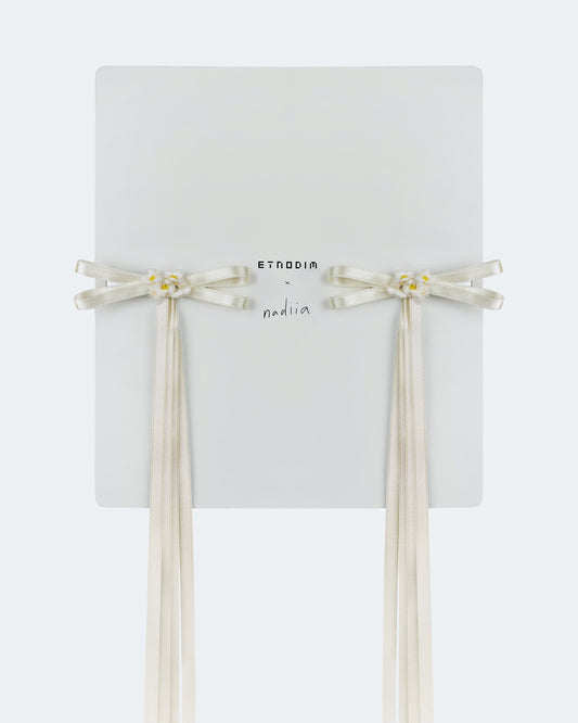 A pair of ribbons-barrettes "Tsarivna" in Milky "